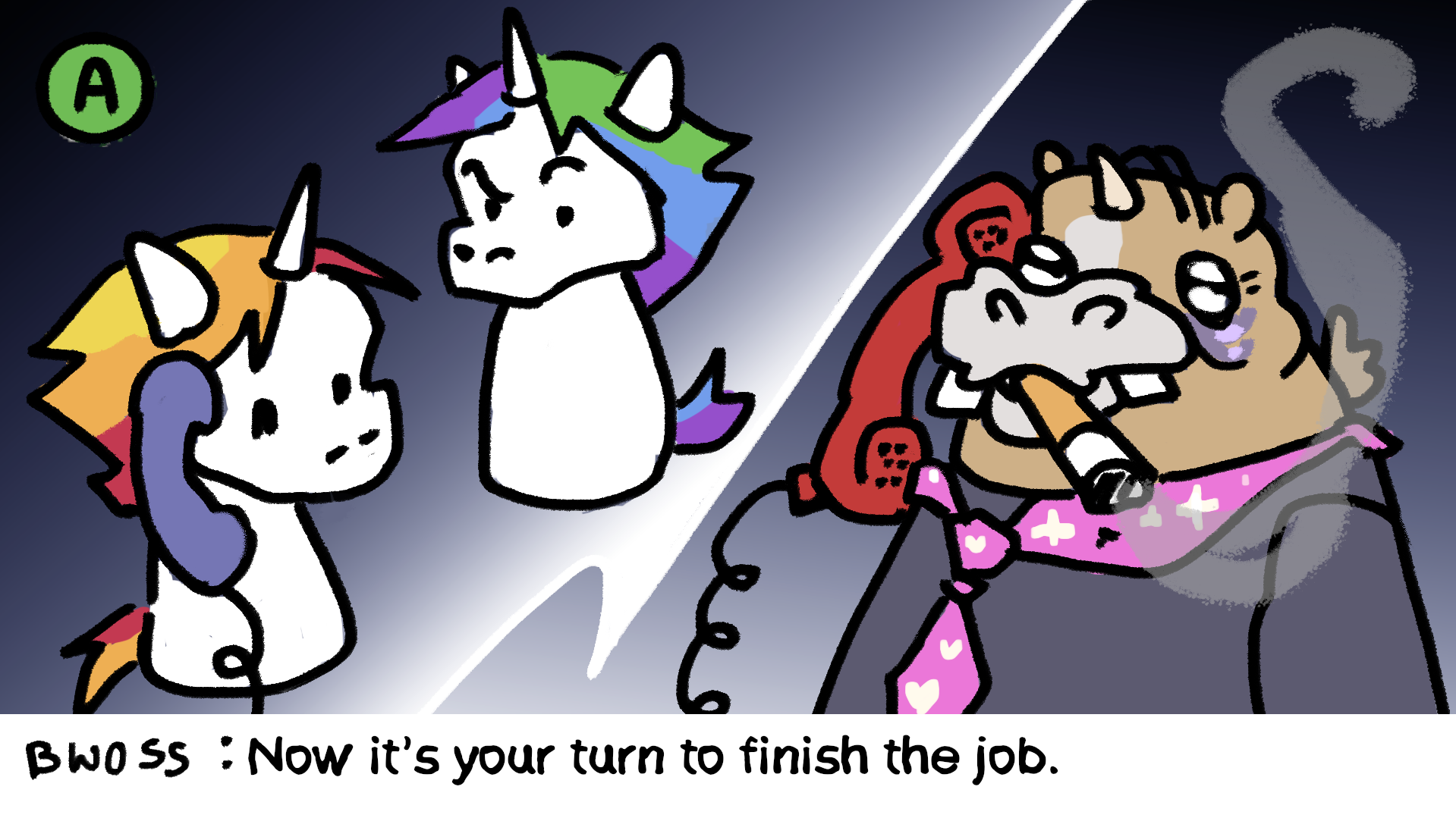 Unicorp, a corporation consisting of unicorns, is an organization that tactically purifies crime scenes, left behind by their own assassin herd, as fast as possible!